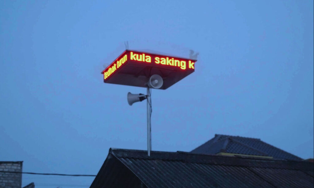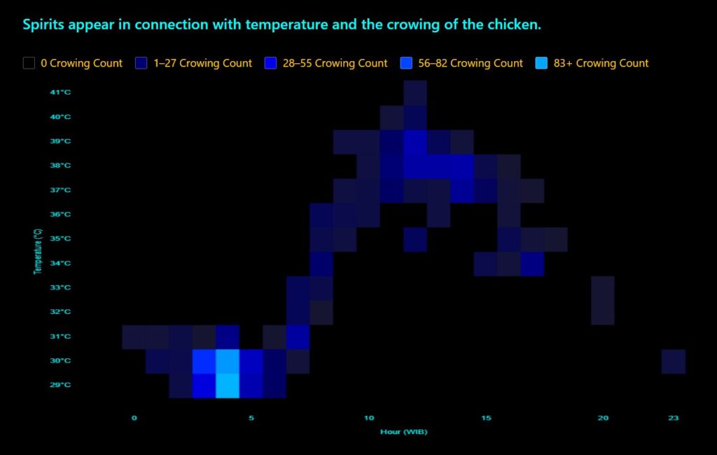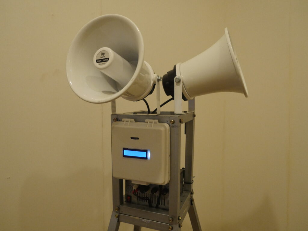 この仕組みを使い、どこか遠くで鶏が鳴いたことを報せる装置、株価と鶏が鳴いたことを関連させるグラフ、鶏の鳴く時間帯と霊の発生を連想させるようなウェブサイト、アザーンを流すスピーカーを模したデザインを取り入れたタワーをつくり、株価取得で鶏の声がスピーカーから村の中で流れる装置、鶏が鳴いたら遠くのデバイスの文字が光る装置などを制作した。