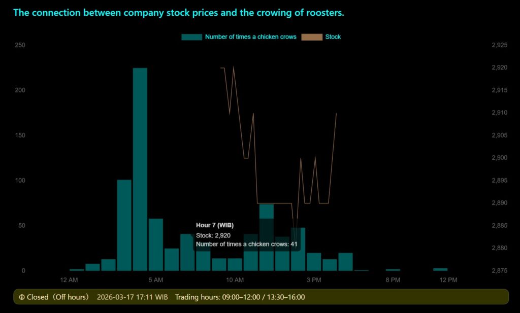放し飼いの鶏や、霊的な存在と、株価等のグローバルな金融システムは、通常は交わらない。これはそのまま、失われつつある共同体性と資本主義との間の交わらなさと重なる。しかし、どちらも見えないが信じられているという点では構造は似ており、この点において、霊と資本を同じカテゴリに引きずり出そうと試みた。また、「鶏が夜に鳴くと霊がいるかもしれない」という民間信仰を、テクノロジーを使って数値化することで、共同体的な感覚を再編成し今の世界に霊を復活させる試みでもある。